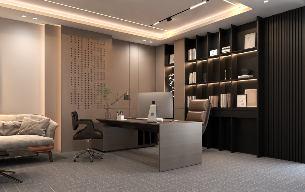 Phòng giám đốc chính là không gian làm việc dành riêng cho lãnh đạo cao nhất của doanh nghiệp, để có thể bao quát và kiểm soát tình hình chung của toàn công ty. Đồng thời, đây cũng là nơi để tiếp khách, cũng như các đối tác kinh doanh quan trọng khác của doanh nghiệp. Thiết kế phòng làm việc cho giám đốc, lãnh đạo nói chung đóng một vai trò quan trọng. Bởi thông qua phòng giám đốc đẹp này, ban lãnh đạo có thể thể hiện được tài lực của doanh nghiệp sự uy tín cũng như vị thế của chính công ty. Ban lãnh đạo trong công ty là những người cần phải xử lý một khối lượng công việc lớn. Họ cũng là những người phải chịu rất nhiều áp lực. Vì thế, nếu thiết kế phòng làm việc giám đốc đảm bảo các tiêu chuẩn, thì ban lãnh đạo sẽ cảm thấy vô cùng thoải mái và có thêm nhiều năng lượng hơn để làm việc. Đồng thời, giúp các ban lãnh đạo có thể đưa ra các quyết sách đúng đắn, chuẩn xác nhất cho công ty. Dưới đây là một mẫu phòng lãnh đạo được HDhomez khá tâm đắc bởi nó đáp ứng được các yếu tố nên ở trên. Ngoài ra, đây là thiết kế đã được CĐT duyệt thiết kế và thi công hoàn thiện bởi đội ngũ nhân sự tay nghề cao của HDhomez vào tháng 3 vừa qua.